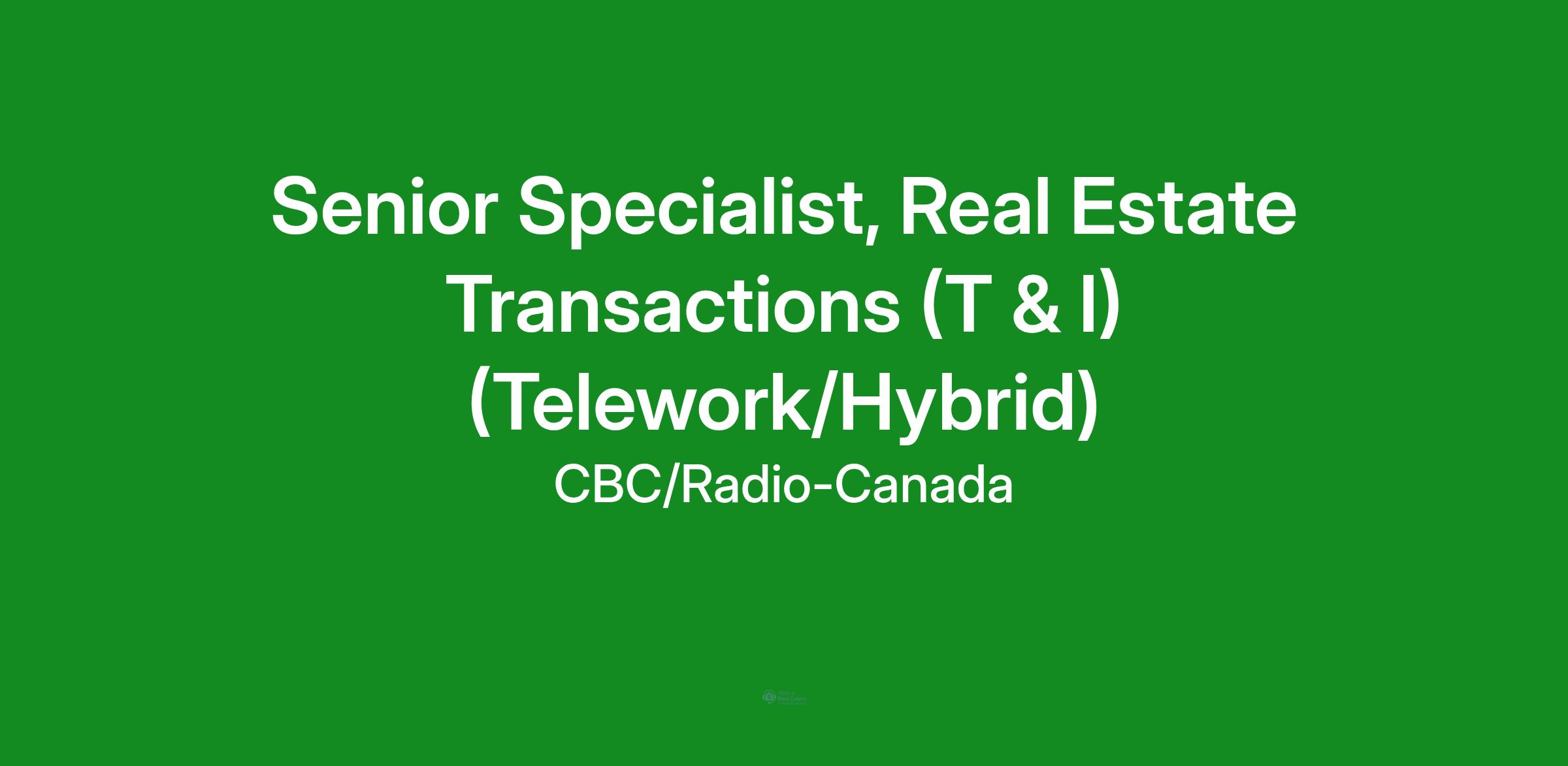 Senior Specialist, Real Estate Transactions (T & I) (Telework/Hybrid)Status of Employment: